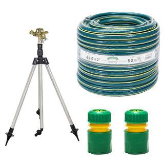 Kit complet irigare cu aspersor metalic telescopic si furtun 50m 1/2 si 2 mufe 1/2
