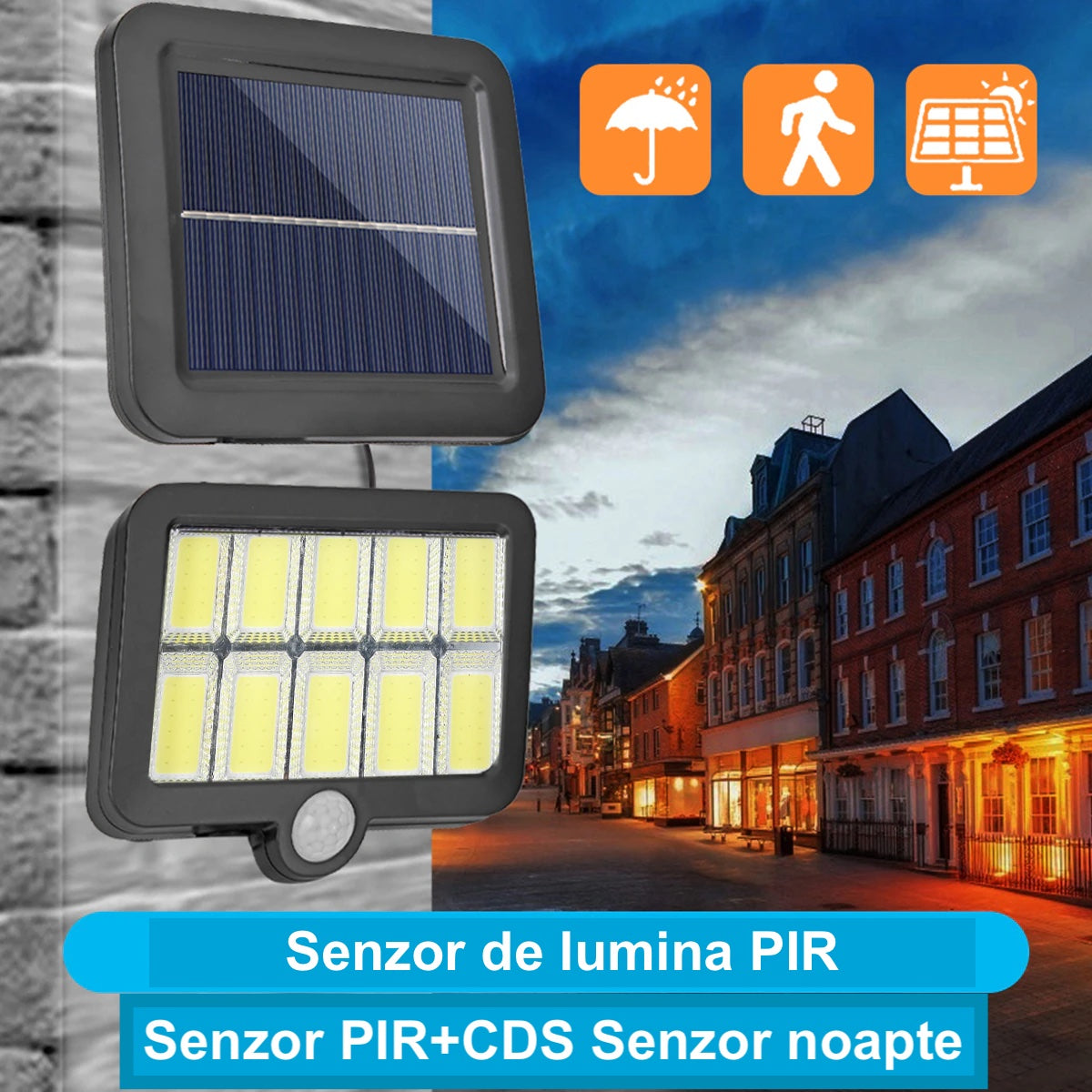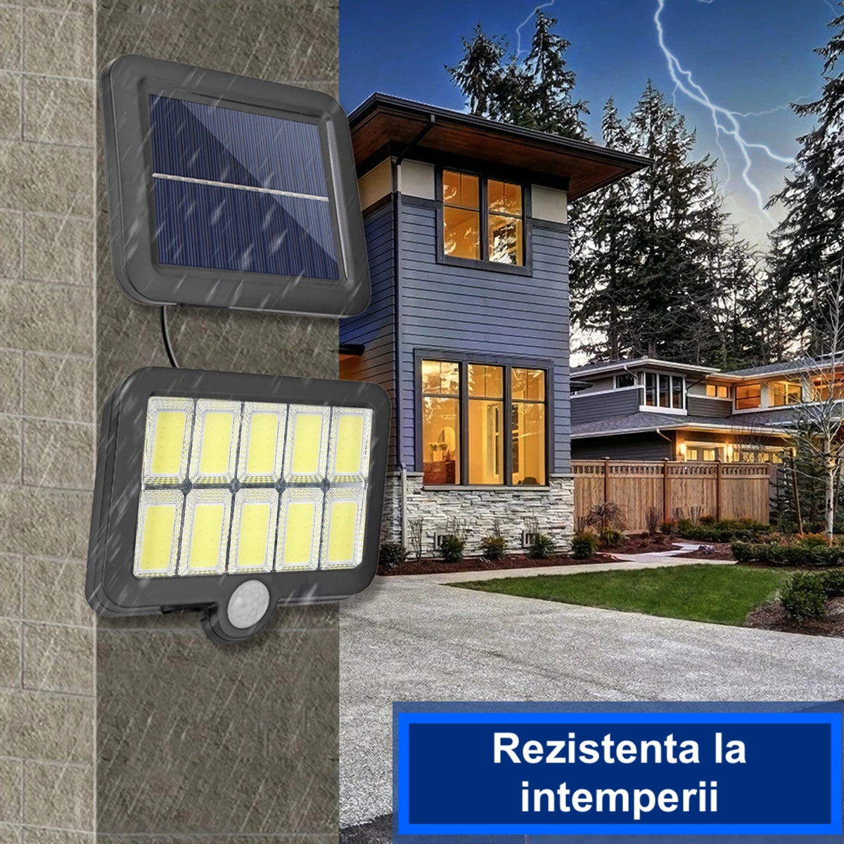 Design divizat - Comparativ cu sursele de iluminare de perete obisnuite, acest produs separa panoul solar de corpul principal de iluminare, asigurand un panou mai mare de incarcare, pentru a stoca mult mai multa energie in timpul zilei si pentru a emite lumina mai puternica si durabila noaptea.