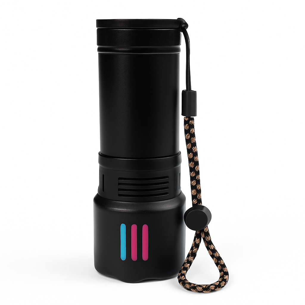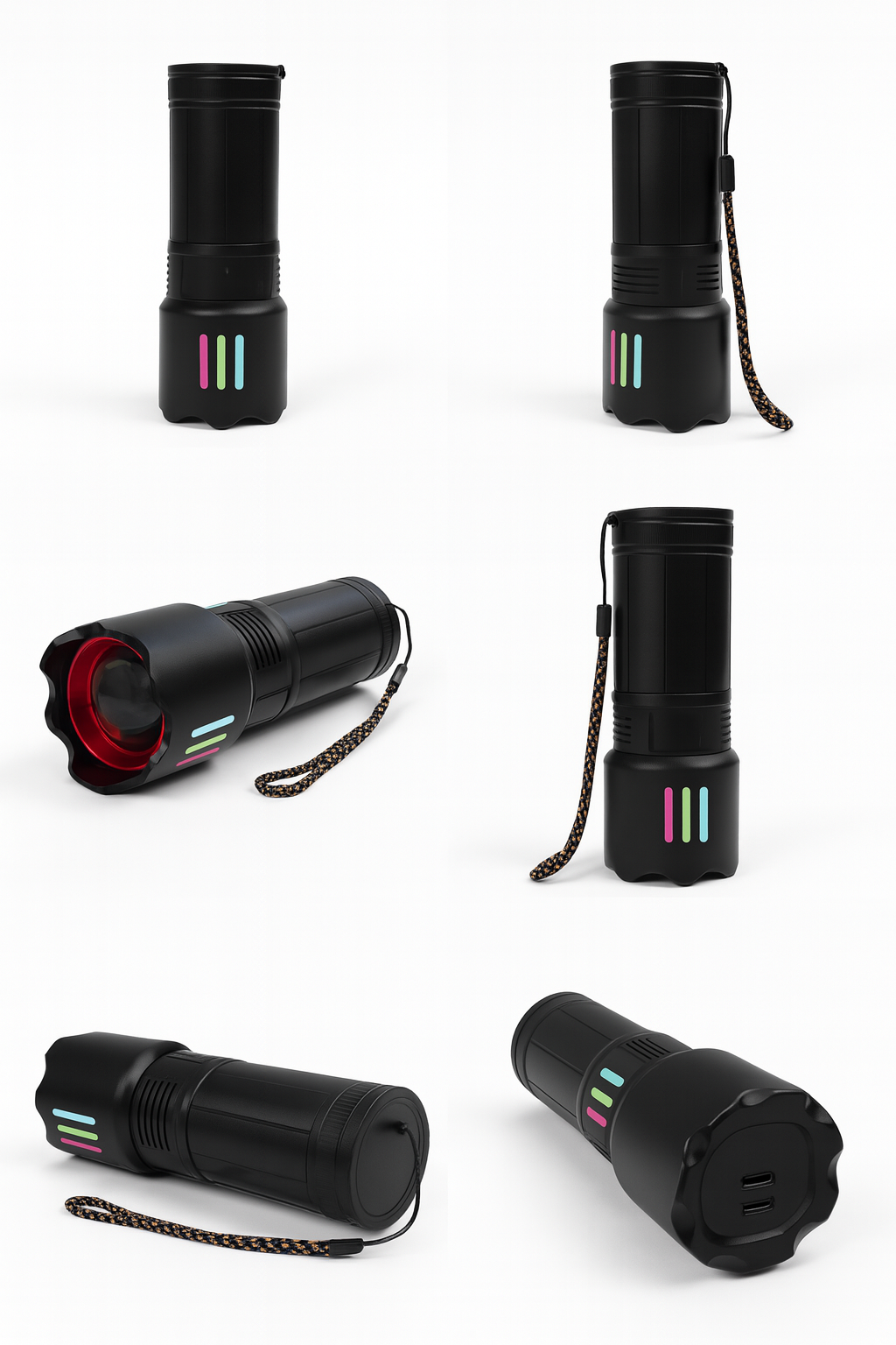Ai incarcare Type-C, zoom reglabil si baterie tip 38650.