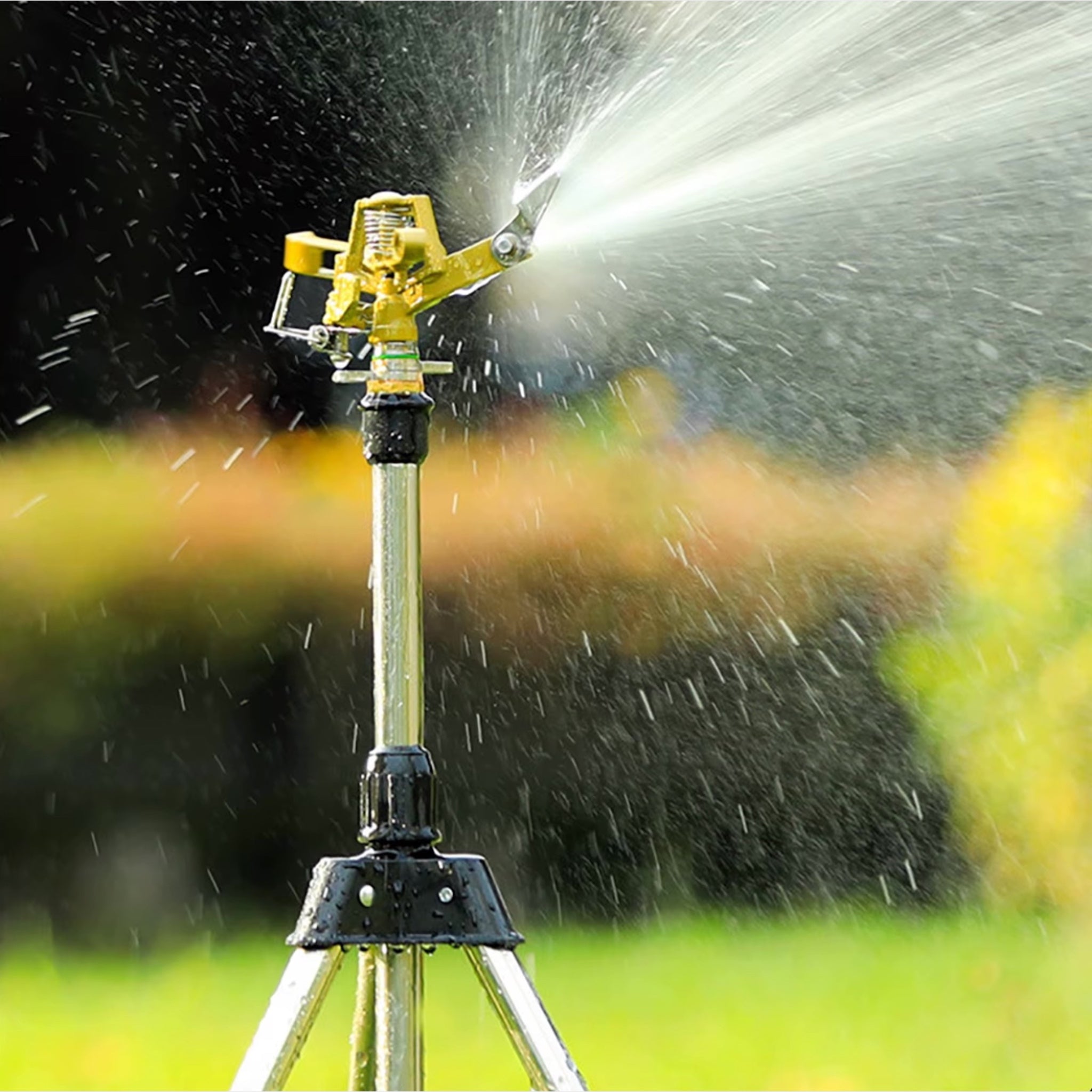 Imbunatatiti-va sistemul de irigare al gradinii cu acest aspersor din metal pulsatoriu cu trepied telescopic din aluminiu, proiectat pentru a oferi o acoperire uniforma si eficienta a suprafetelor verzi.