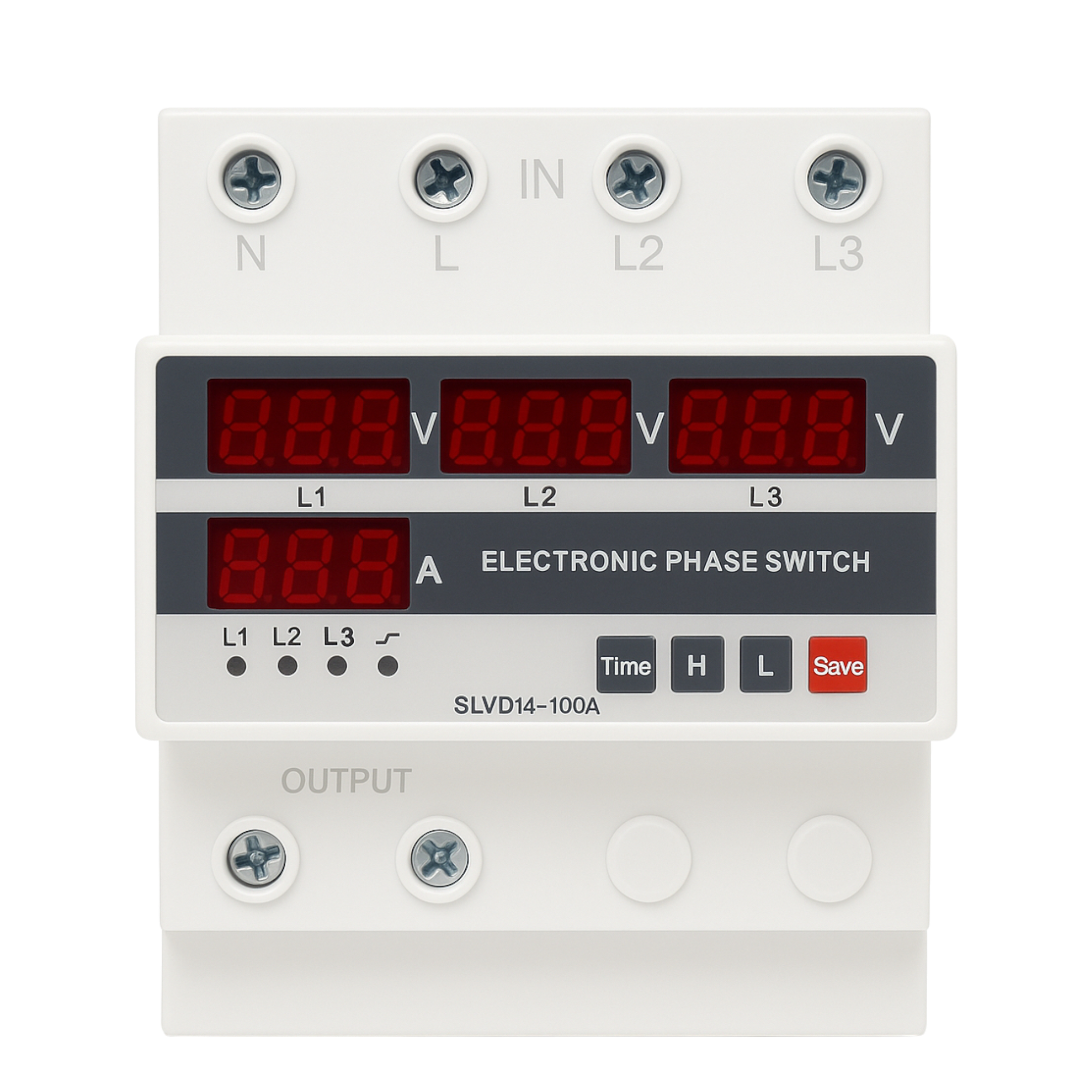 Acest comutator de faza digital monitorizeaza cele trei faze si selecteaza automat faza stabila pentru alimentarea consumatorilor tai.
