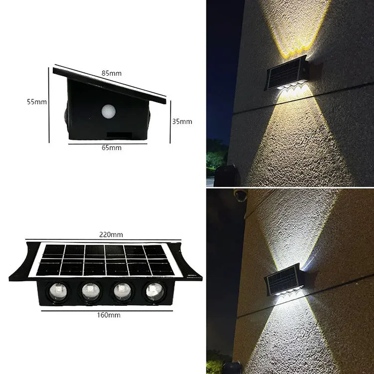 Lumineaza-ti gradina sau terasa inteligent si fara cabluri, cu aceasta lampa solara de perete echipata cu 8 LED-uri puternice si incarcare automata la lumina soarelui.