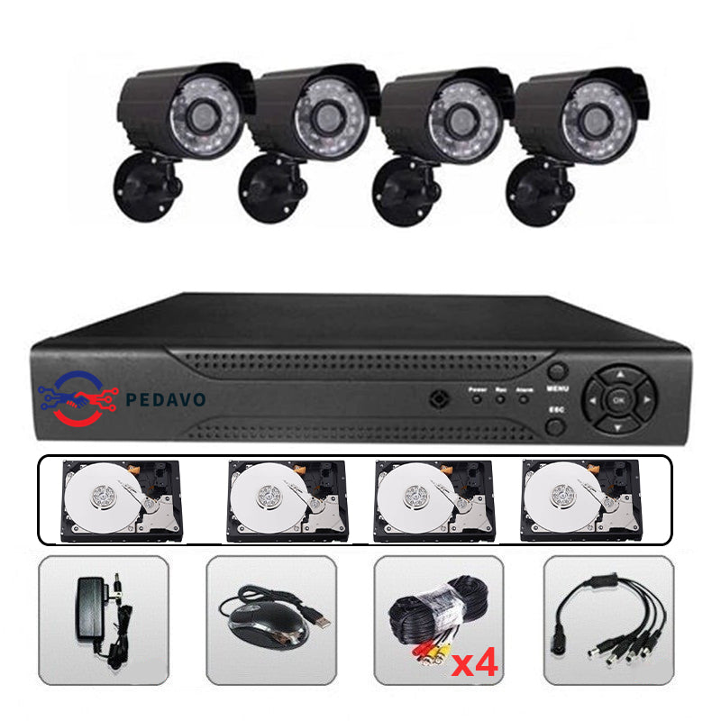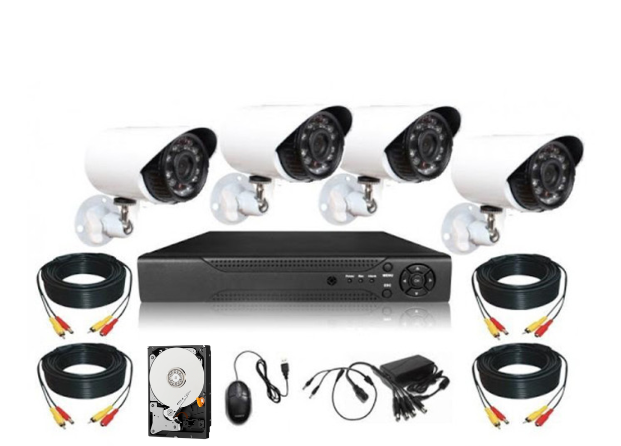 Kit Sistem de supraveghere video format din 4 camere full hd cu suporti inclusi, DVR, 4 cabluri video/alimentare de 15-20 de metri si HDD 160GB.