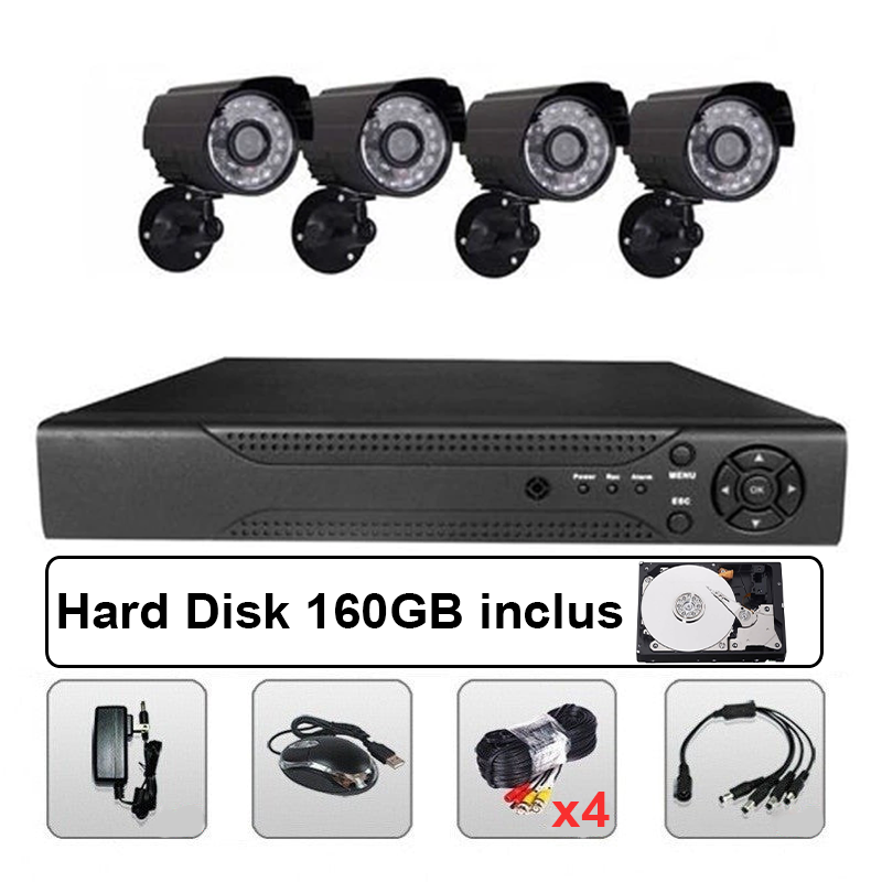 Kit supraveghere video sistem cctv dvr 4 camere HDD 160GB inclus