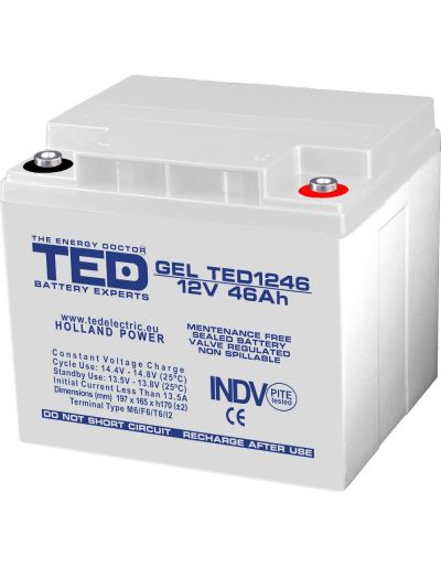 Bateria Gel de 12V 46Ah de la Ted ofera o putere de incredere si durabilitate care satisface nevoile cele mai exigente de alimentare cu energie.