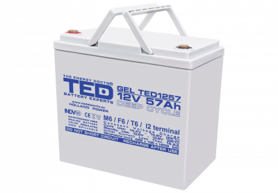 Bateria Gel de 12V 57Ah de la Ted este o solutie excelenta de alimentare cu energie pentru necesitatile dumneavoastra, oferind performanta si durabilitate, indiferent de aplicatia dvs.
