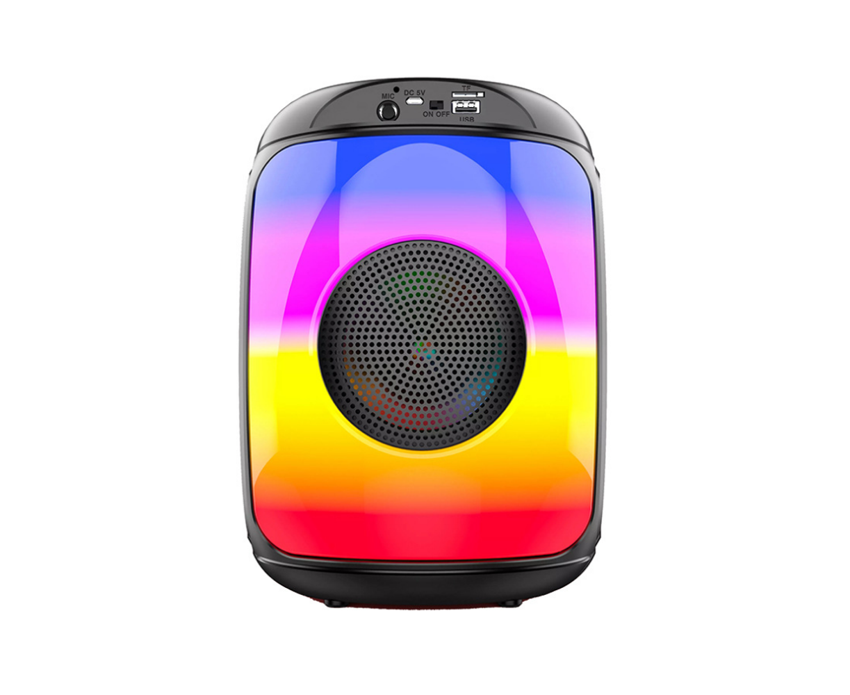 Lumini LED colorate adauga o nota de distractie si eleganta la orice atmosfera, iar microfonul inclus iti ofera posibilitatea de a canta karaoke sau de a efectua apeluri hands-free.