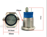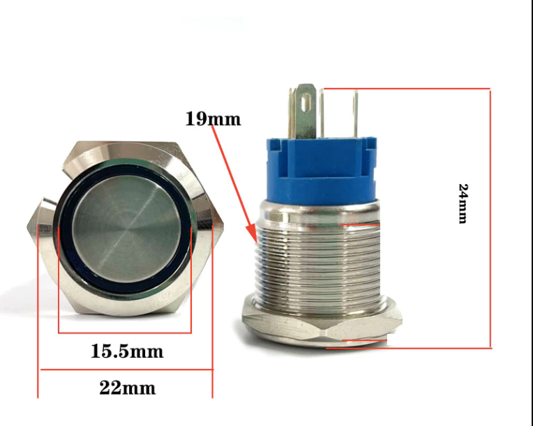 Buton metalic cu led prin apasare fara retinere 19mm 24V