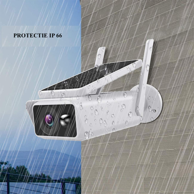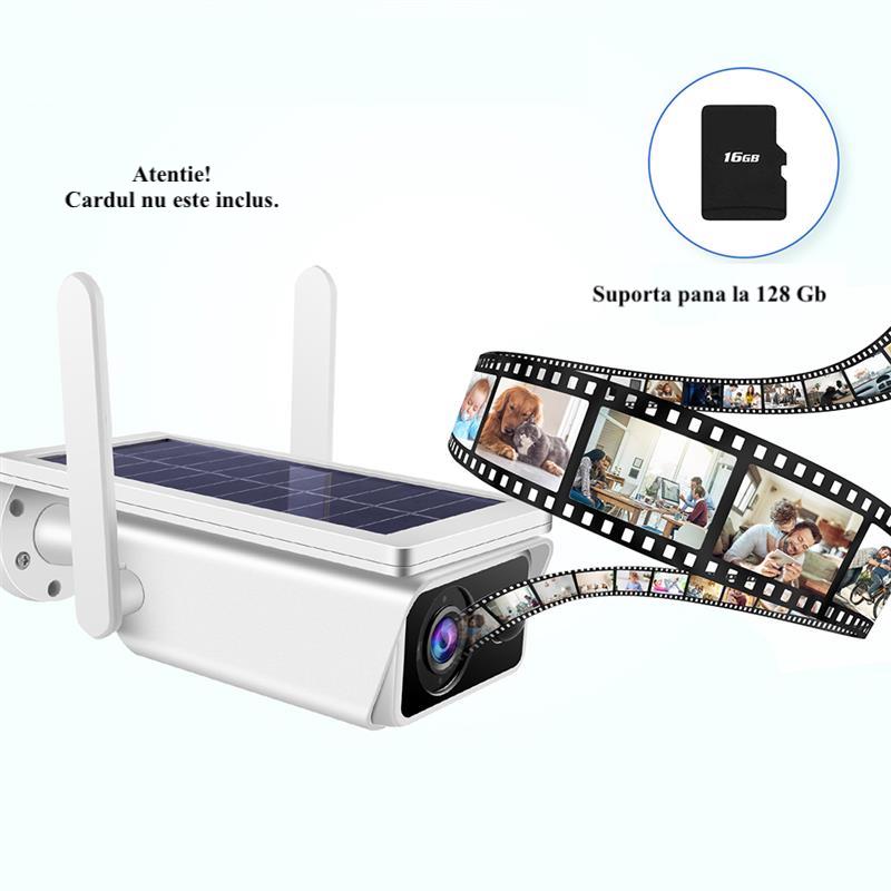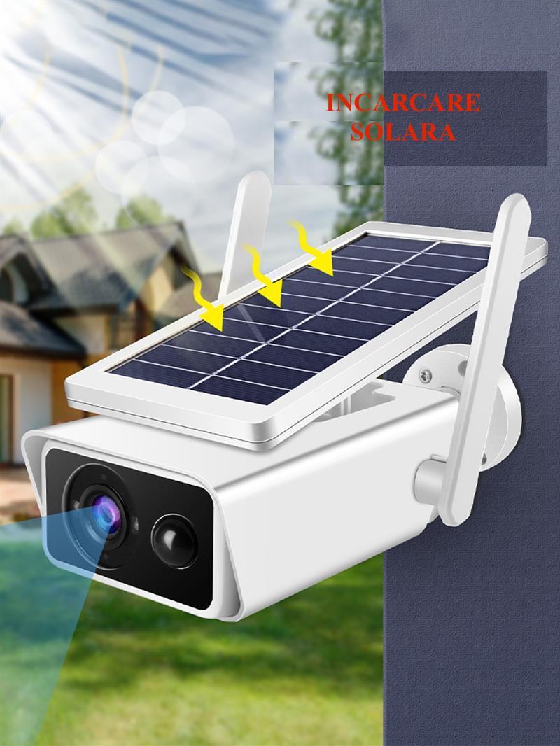 Este o camera de supraveghere cu incarcare solara, ideala pentru monitorizarea zonelor exterioare.