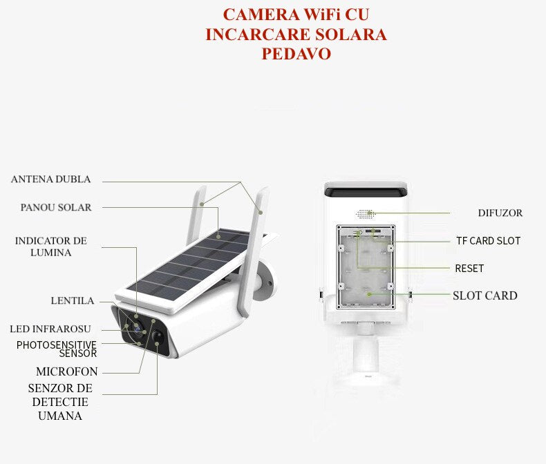 Camera supraveghere solara Wifi HD IP 1080p PTZ Night Vision Pedavo