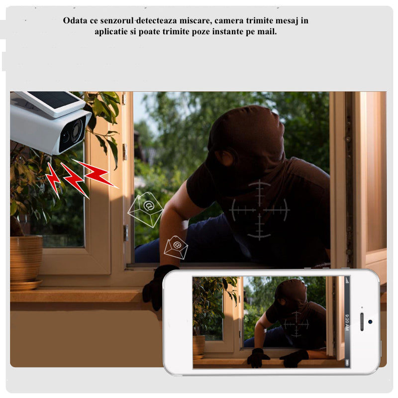 - Detectare miscare: asistenta, trimite mesaj direct pe telefon