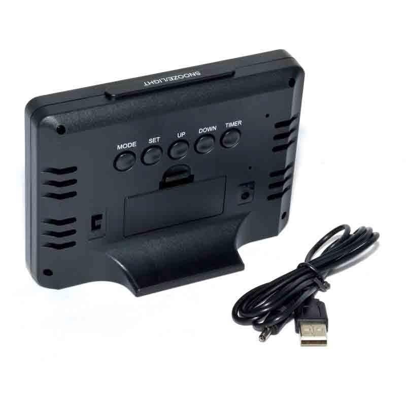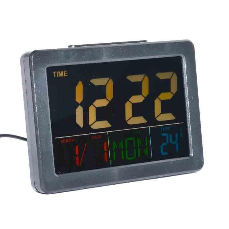Afisajul LED multicolor al acestui ceas afiseaza simultan ora, data, ziua saptamanii si temperatura. Dispune de 8 tonuri de alarma, pentru alegerea preferata. Designul elegant si usurinta in utilizare fac din acest ceas un element decorativ de calitate. Fabricat din materiale durabile, este conceput pentru a functiona pe termen lung.