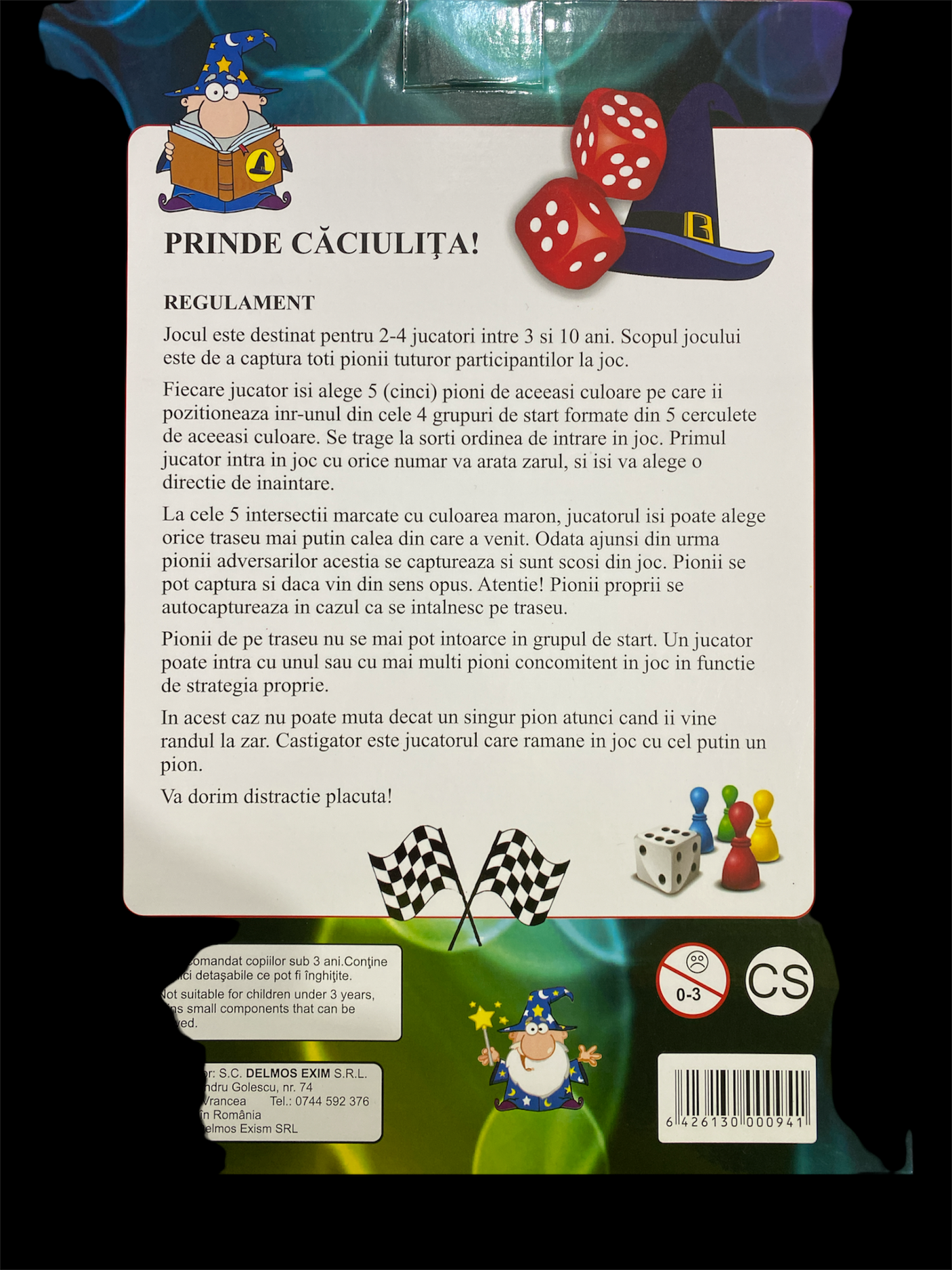 Jocul este destinat pentru 2-4 jucatori intre 3-10 ani. Scopul jocului este de a capta toti pionii tuturor participantilor la joc.