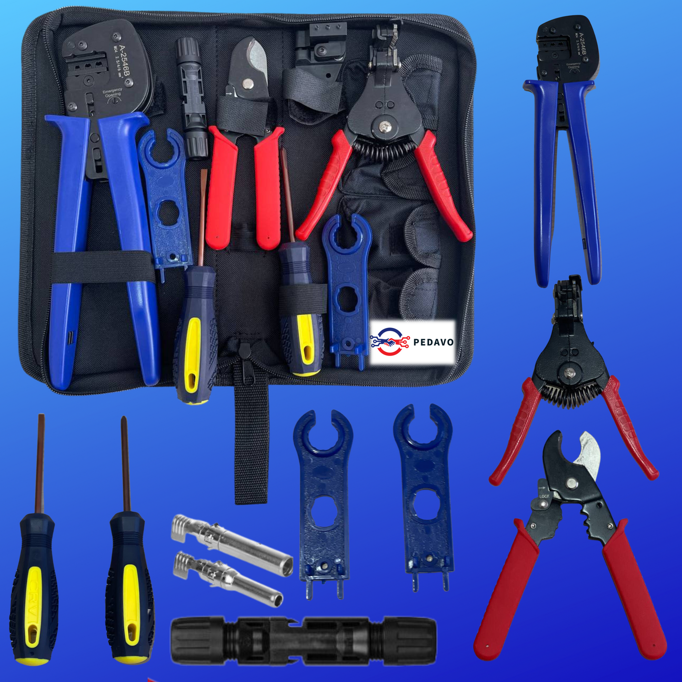 Un set de instrumente solide compatibile cu conectorii MC4 si cea mai populara cablare folosita în fotovoltaica. Instrumentele prezentate sunt foarte bune pentru realizarea de instalatii fotovoltaice.