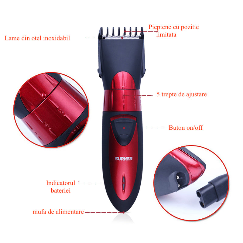 Aparatul de tuns imbina functionalitatea cu designul foarte placut si durabilitatea in timp. Este foarte usor de utilizat de catre toate persoanele ce doresc o tunsoare noua sau retusuri ale parului.
