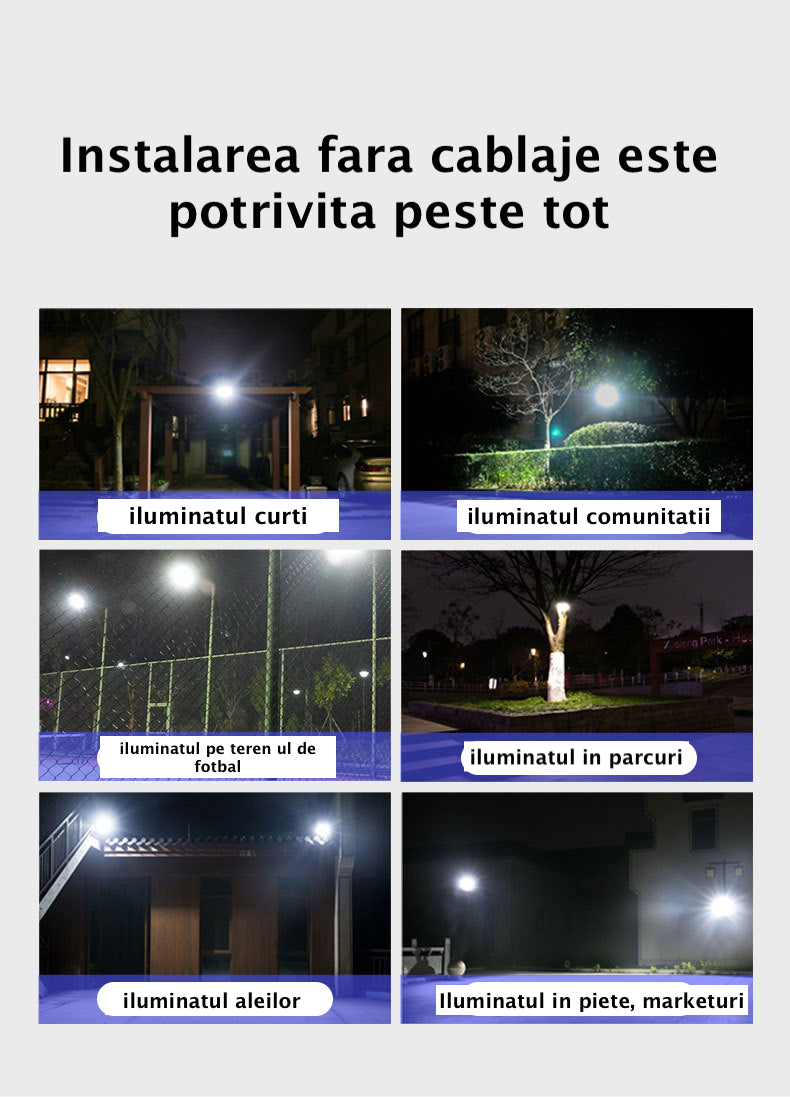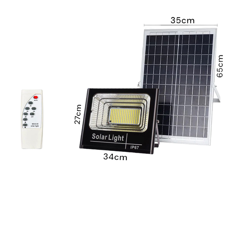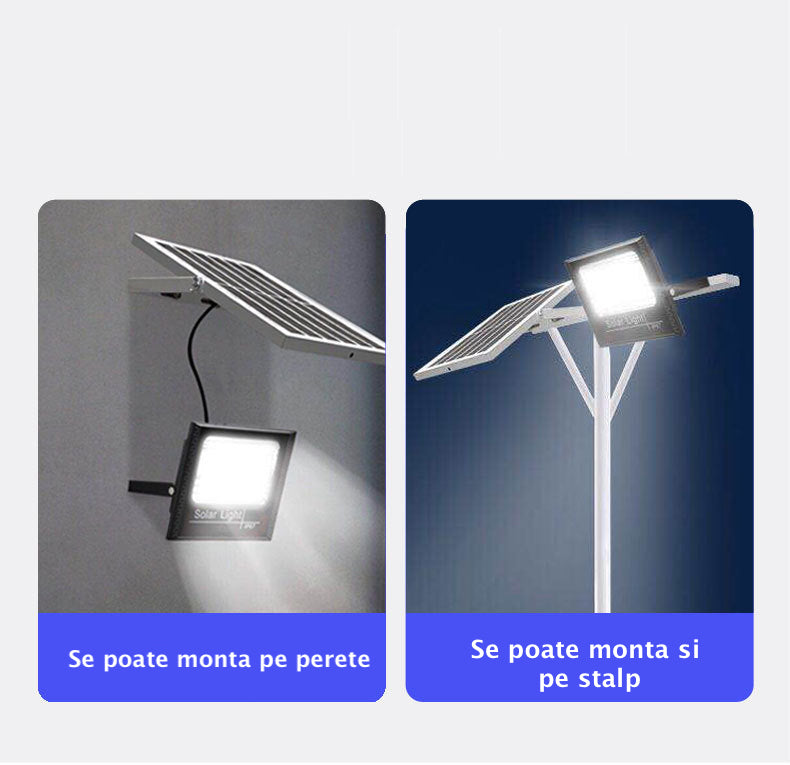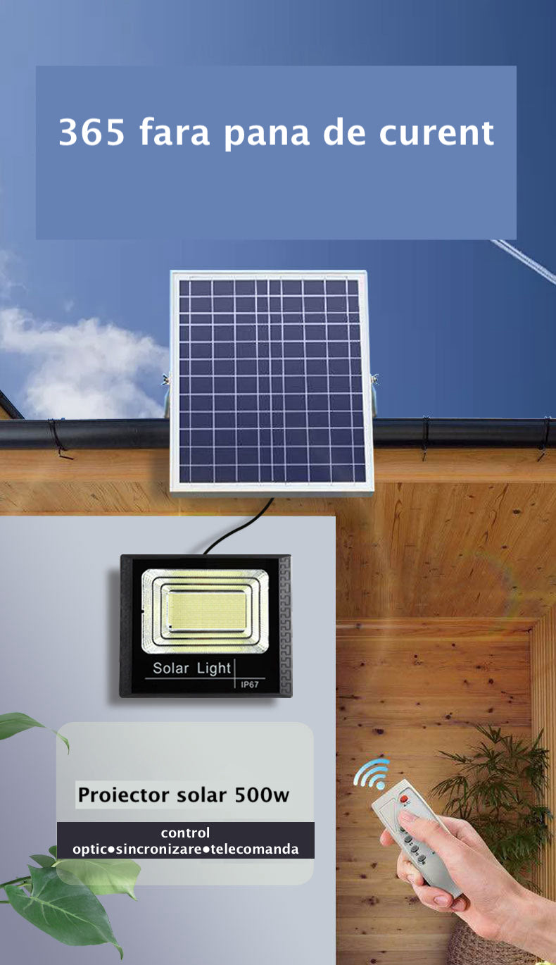 Cu o capacitate de 500W, acest proiector ofera o lumina intensa si clara, alimentata prin energia solara captata de panoul sau mare.