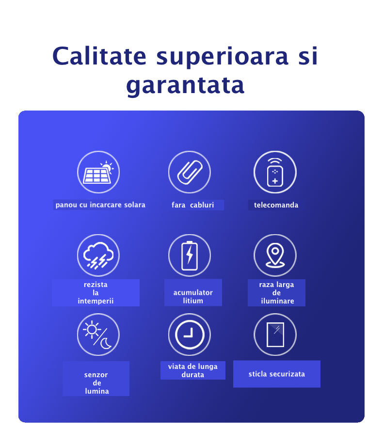 Senzorul integrat asigura o functionare inteligenta, activand lumina la nevoie, cum ar fi la detectarea miscarii sau in conditii de intuneric.