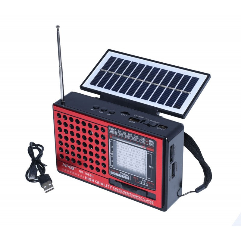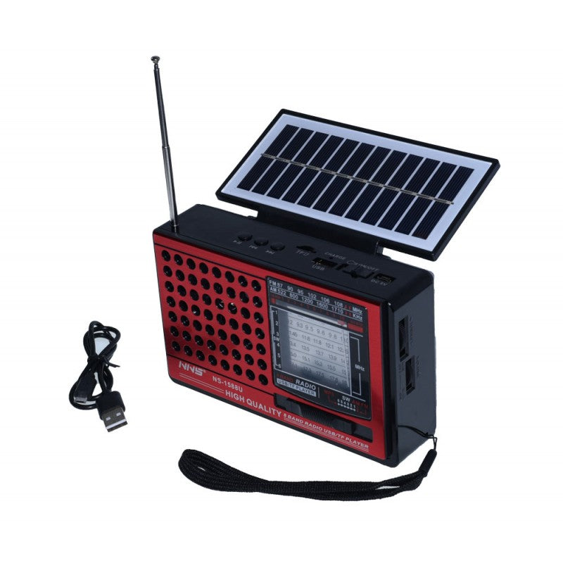 Radio solar portabil cu aspect retro, usor de transportat si economic, datorita alimentari cu energie, prin panoul solar atasat.