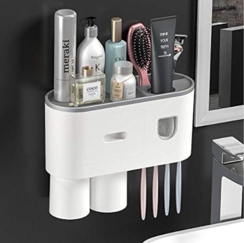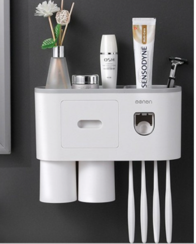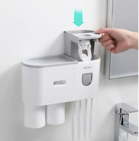 Acest suport pentru periute de dinti vine include un dozator pentru pasta de dinti.