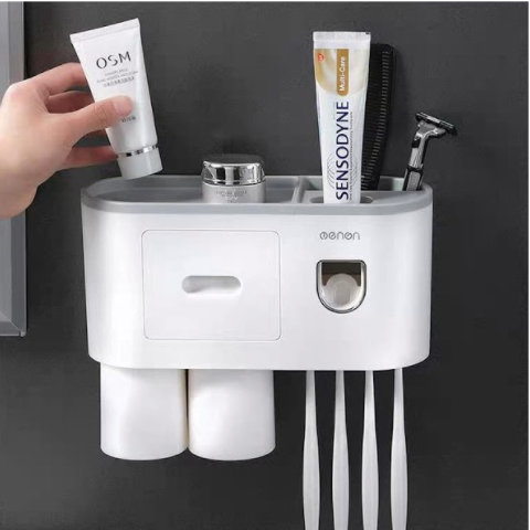 Suport 2 pahare magnetice si dispenser pasta de dinti